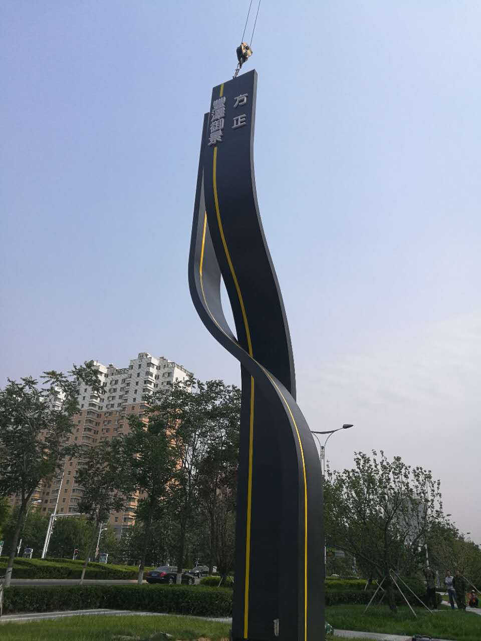 雕塑說明:雕塑垂直高12米,采用2mm厚#304不銹鋼材質(zhì),手工鍛造成型,內(nèi)置金屬骨架,表面噴涂氟碳漆,內(nèi)置led光源。