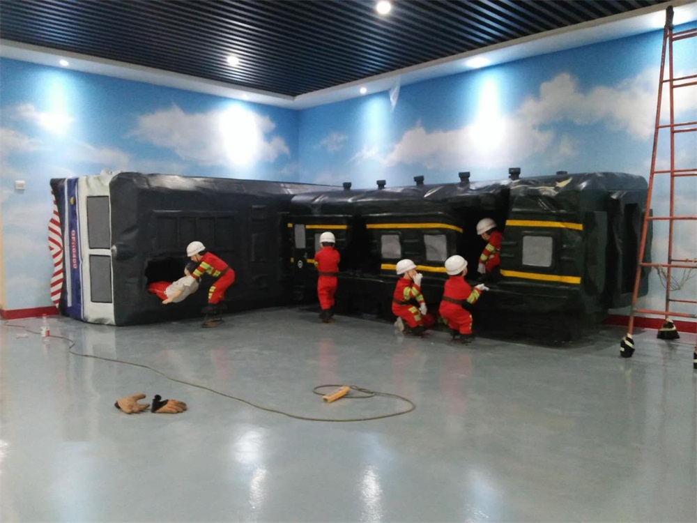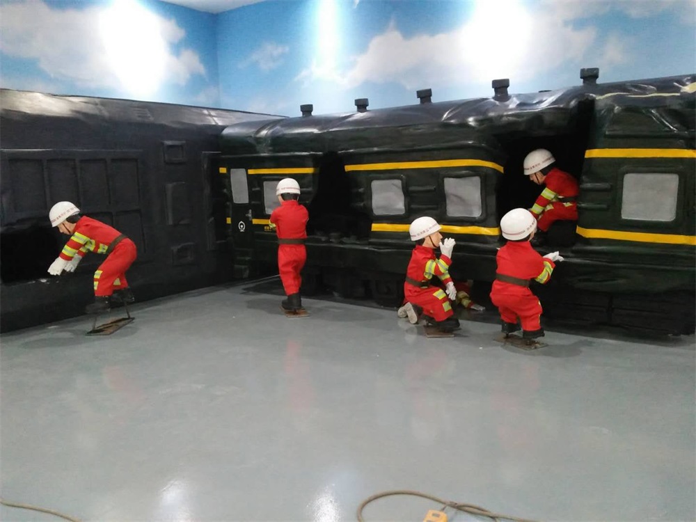 雕塑說明:雕塑整體場景以發(fā)生在淄博市境內(nèi)的一場火車碰撞事故救援現(xiàn)場為題材?;疖嚹P筒捎门菽袼芄に囍谱鳎砻娌世L。消防人物雕塑采用玻璃鋼雕塑工藝制作。
