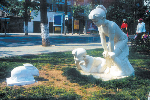 石材雕塑展示。石雕,指用各種可雕、可刻的石頭,創(chuàng)造出具有一定空間的可視、可觸的藝術(shù)形象,借以反映社會生活、表達(dá)藝術(shù)家的審美感受、審美情感、審美理想的藝術(shù)。常用的石材有花崗石、大理石、青石、砂石等。石材質(zhì)量堅硬耐風(fēng)化,是大型紀(jì)念性雕塑的主要材料。